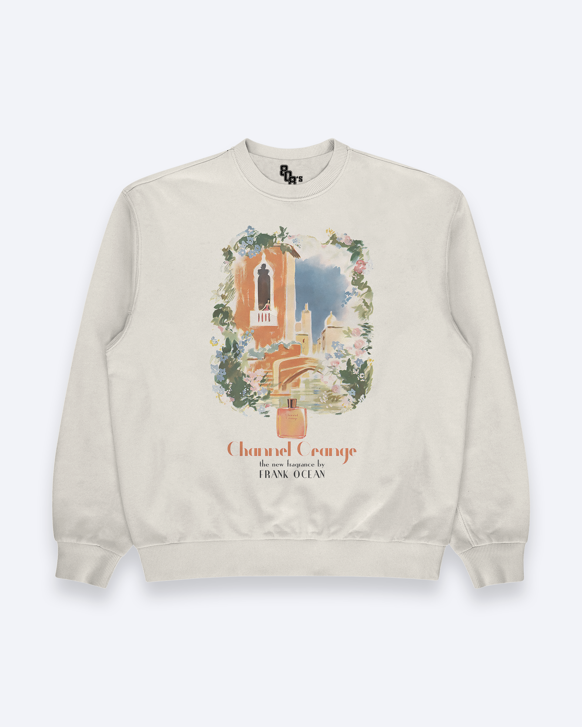 Inspired by Frank Ocean's groundbreaking 2012 masterpiece that debuted at #2 on Billboard 200, earned Grammy nominations, and achieved the rare Pitchfork score of 9.5/10, this sweatshirt captures the album's smooth, soulful essence through vintage perfume advertisement aesthetics. The album title itself references grapheme-color synesthesia, through which Ocean perceived the color orange during the summer he first fell in love.